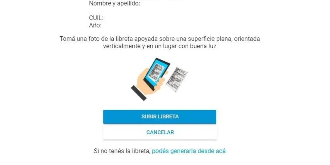 4. Una vez que la completaste y generaste, sacale una foto, ingresá nuevamente a la web y adjuntá el archivo en la opción SUBIR LIBRETA.