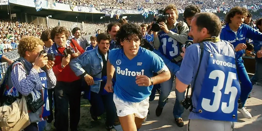 En esa casaca estaban aquellos 100 goles del 10, aquellos gritos a puño alzado y combatiente. El salto eufórico del pibe de Fiorito, de La Paternal y la Bombonera, que conquistó el sur pobre y laborioso de Italia.
