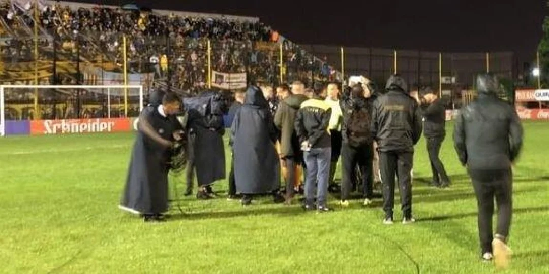 Cumplido ese tiempo, los arqueros Romiro Martínez y Cristian Aracena, decidieron que no estaban las condiciones dadas, ya que ellos son los más perjudicados por la falta de luz,  para no dar ningún tipo de ventaja deportiva, teniendo en cuenta lo trascendente del encuentro, es que se suspendió el partido para mañana lunes.