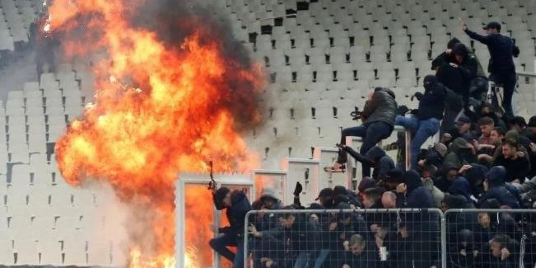 Antes de que comenzara el encuentro entre el AEK Atenas y el Ajax de Holanda, las dos hinchadas se enfrentaron en las tribunas del estadio con bengalas y bombas de estruendo.