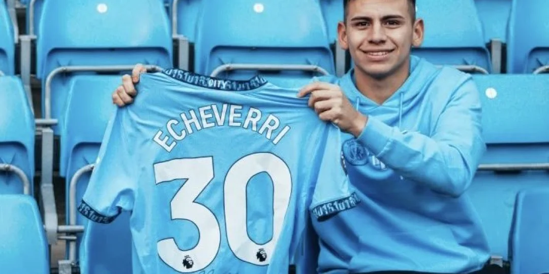 El Manchester City presentó oficialmente a Claudio "Diablito" Echeverri con una serie de publicaciones en redes sociales para entusiasmar a sus hinchas. En la primera, se anunció que el mediocampista argentino usará el dorsal 30, en lugar del 19. Luego, se compartió una imagen frontal del jugador con el mensaje: "Un nuevo azul argentino".