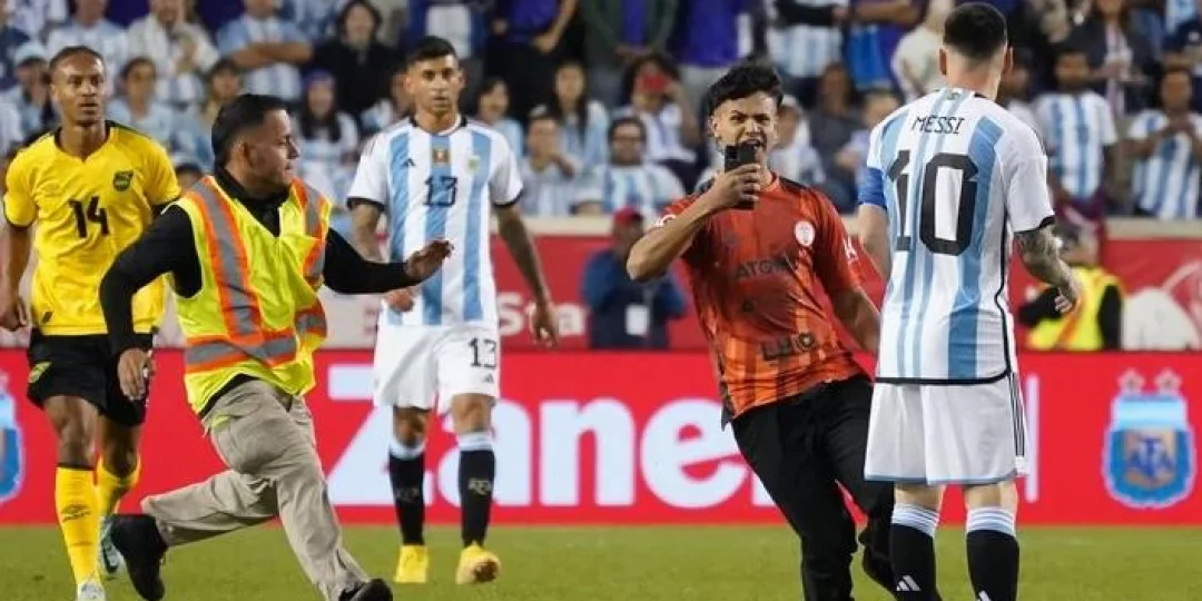 Este martes la Selección Argentina jugó contra Jamaica en lo que fue su penúltimo amistoso antes del Mundial de Qatar 2022. Promediando el segundo tiempo, ya con Lionel Andrés dentro del campo de juego, un hincha portando la camiseta del club mendocino invadió el campo de juego para sacarse una foto con Messi y la seguridad lo paró rápidamente.