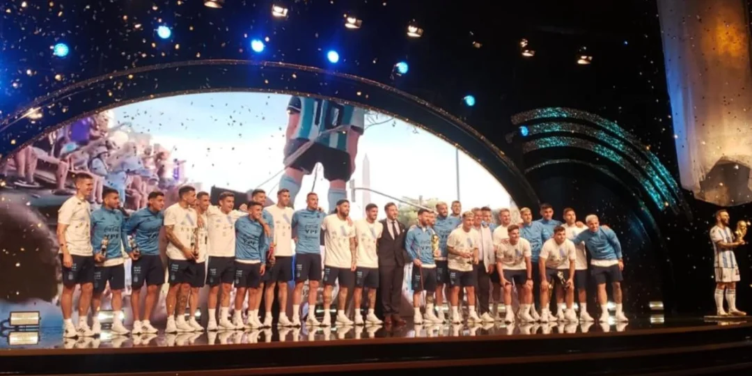 También tuvo su momento Soledad Pastorutti interpretando la canción "Brindis", una de las preferidas de Messi y del plantel argentino. Para el cierre, llegaron los hologramas de Diego Maradona y Pelé elogiando a Lionel Messi, antes de que el estrado finalmente subiera al escenario a dar su esperado discurso.