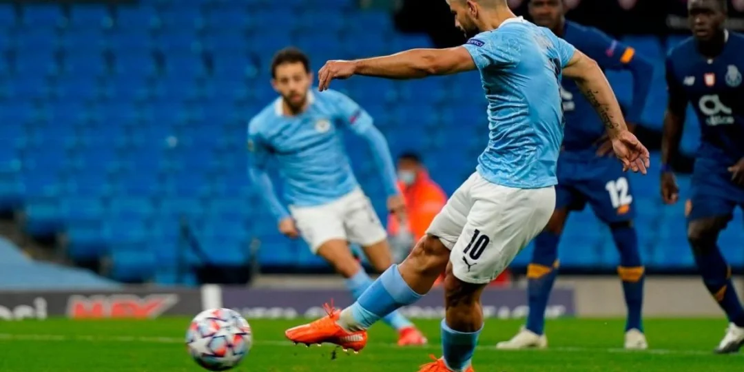 Sergio Agüero marcó un gol de penal para Manchester City de Inglaterra en el triunfo ante Porto de Portugal, por 3 a 1 ,en el grupo C de la Champions League.