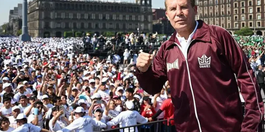 El excampeón mundial en tres divisiones de peso, Julio César Chávez (62), ofreció una clase masiva en la plaza principal de la Ciudad de México. Más de 40.000 personas estuvieron presentes, disfrutando junto a Chávez y otros excampeones del mundo en el mítico Zócalo de la capital azteca.