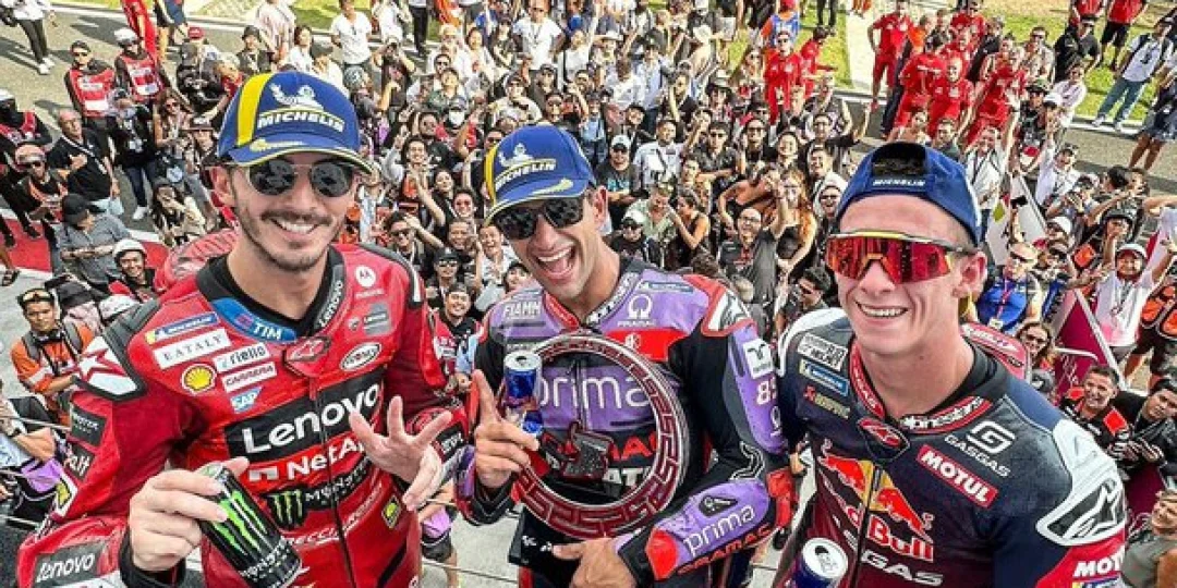 El podio lo completaron el español Pedro Acosta (KTM) y el italiano Francesco Bagnaia (Ducati).