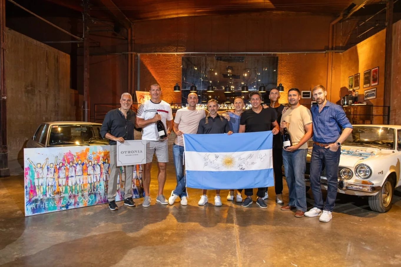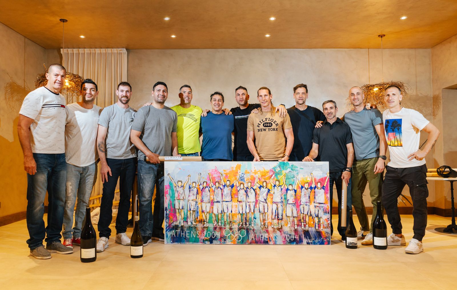 Sin dudas, uno de los momentos más emotivos del viaje fue la entrega del presente realizado por la Bodega Otronia, del grupo Bulgheroni. Los jugadores recibieron un cuadro realizado por la artista mendocina Paola Puliafito, el cual revive el podio con las medallas en Atenas 2004. Según palabras de Pablo Aranda, gerente Comercial de bodegas Otronia y Argento (y que también coordinó del viaje a Mendoza), "el cuadro representa el momento de gloria, sin rostros, un símbolo de la importancia del equipo más allá de los nombres".