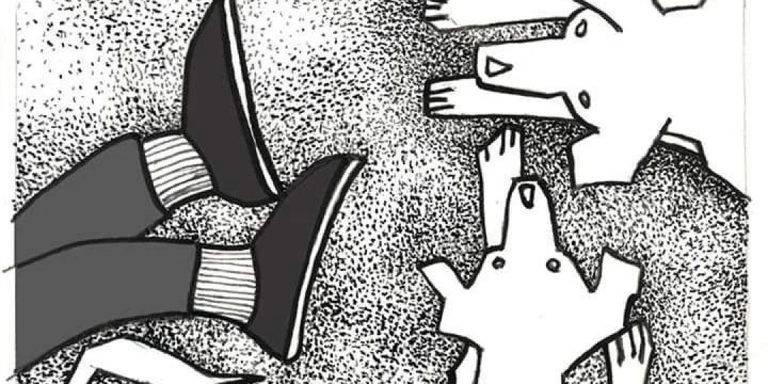 Pero ese día salimos como de costumbre detrás de él y caminamos hasta llegar a un arroyo. Nos detuvimos, porque él se detuvo y unos pasos delante de él, unos perros copulaban. Mi tío se descalzó y comenzó a hablarles a los perros, nosotros paramos la oreja, hicimos lo imposible por aguzar el oído, pero no llegamos a entender qué les decía.