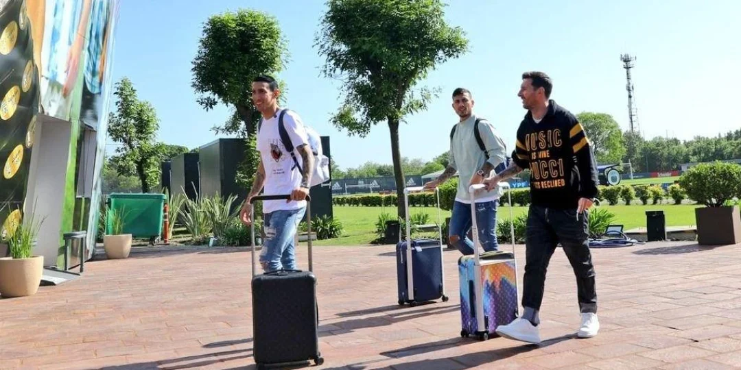 El astro rosarino fue tomado por cámaras de televisión en las instalaciones del aeropuerto internacional de Ezeiza mientras se dirigía por una de las mangas para abordar un minibus rumbo al predio de la AFA en esa misma localidad bonaerense.