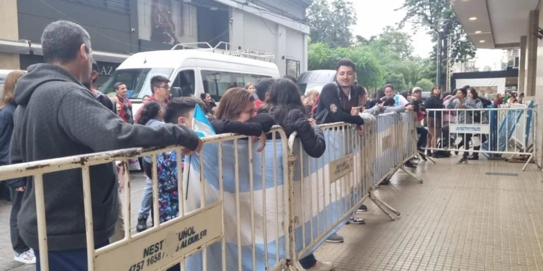 Allí, en la puerta del establecimiento hotelero, se agrupó un grupo de 30 personas a la espera de poder observar de cerca a los integrantes del plantel local.