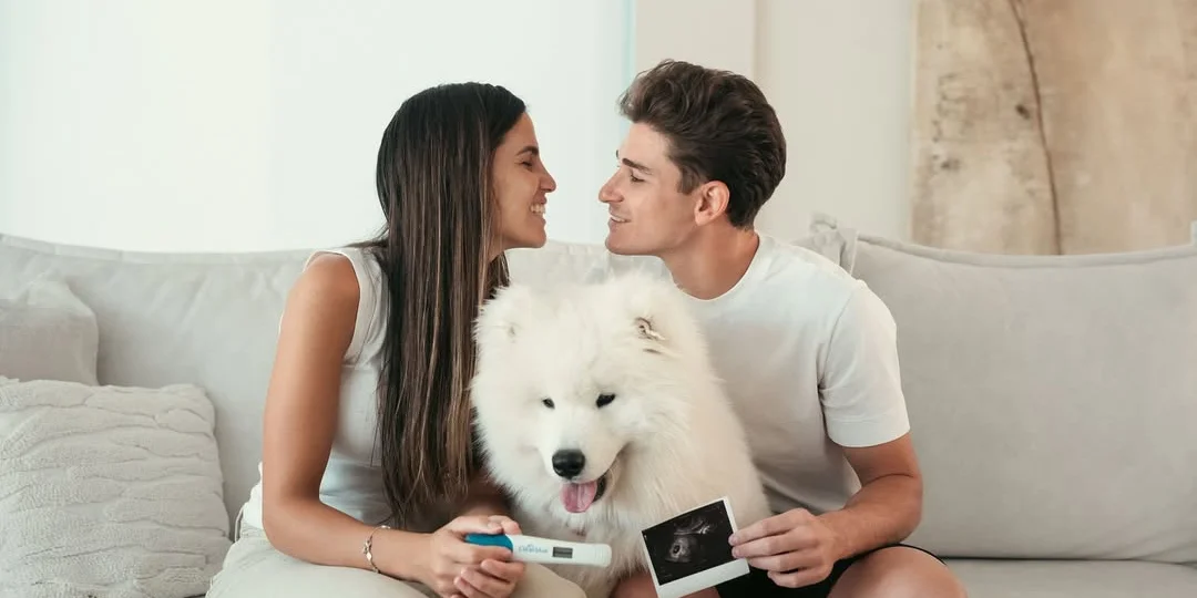 El delantero del Atlético de Madrid compartió una tierna foto con Emilia Ferrero y su perro Tarzán, anticipando la llegada de su primer hijo. "Estamos muy felices", escribió.