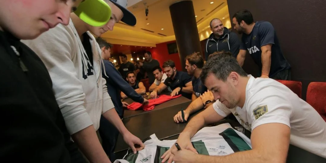 En la previa de este trascendental partido con los Springboks, los rugbiers firmaron autógrafos ante una multitud que se dio cita en las afueras del hotel Intercontinental.