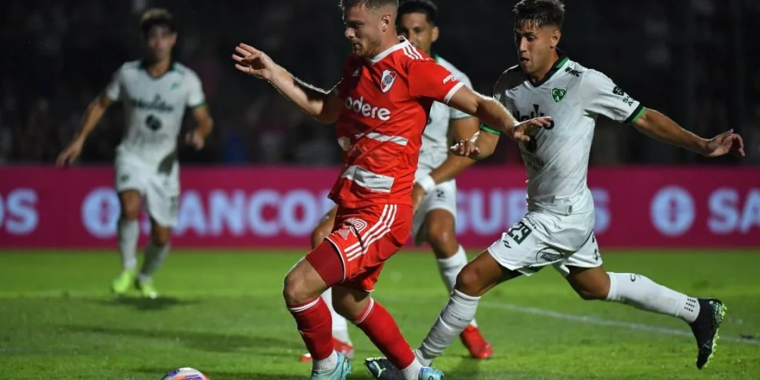River venció 2 a 0 a Sarmiento en el estadio Eva Perón de Junín por la octava fecha del torneo de la Liga Profesional.