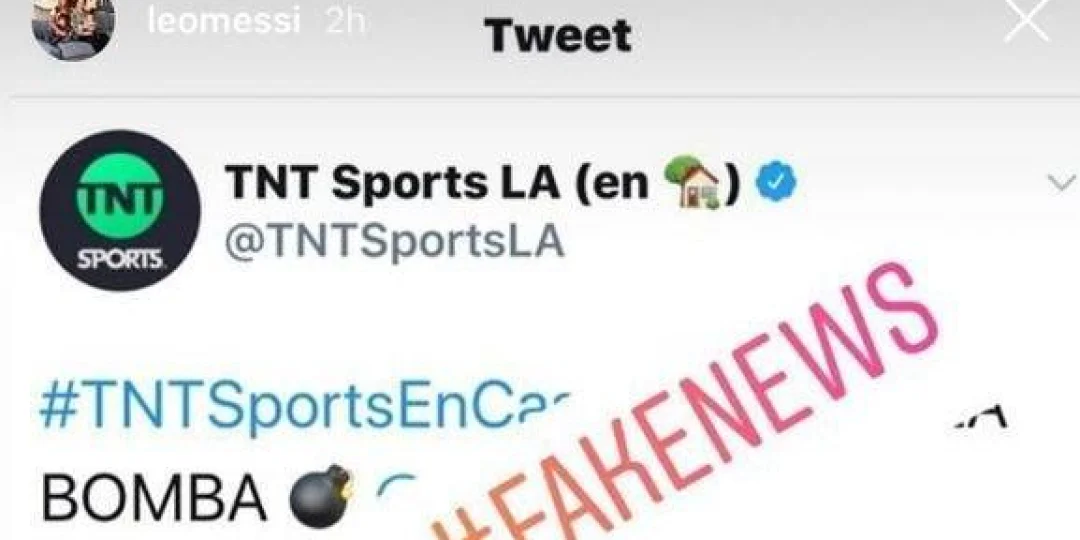 El argentino reprodujo un pantallazo del tweet con las dos noticias y escribió encima de ellas "mentira nº1" y "mentira nº2", además de añadir que "lo que dijeron en este mismo medio (por TNT Sports) sobre Newell's hace unas semanas también era falso. Menos mal que nadie les cree...", para añadir la etiqueta #FakeNews,