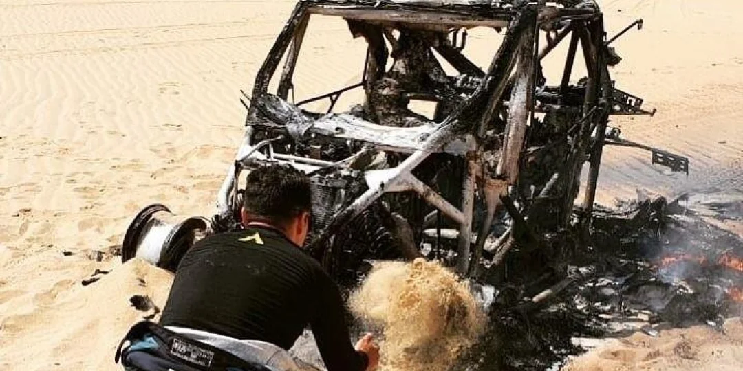 El destacado navegante de nuestra provincia acompañó al ecuatoriano Sebastián Guayasamín y en la tercera etapa el fuego consumió íntegramente el UTV con el que corrían.