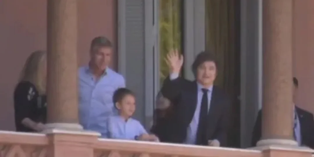 Video: Javier Milei y Martín Palermo saludaron desde el balcón de la Casa Rosada