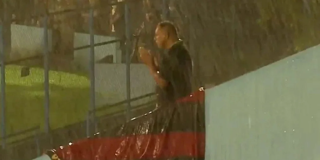 Un fanático de Flamengo Piauí de Brasil fue el único en aguantar los trapos bajo la lluvia cuando su club estaba condenado al descenso