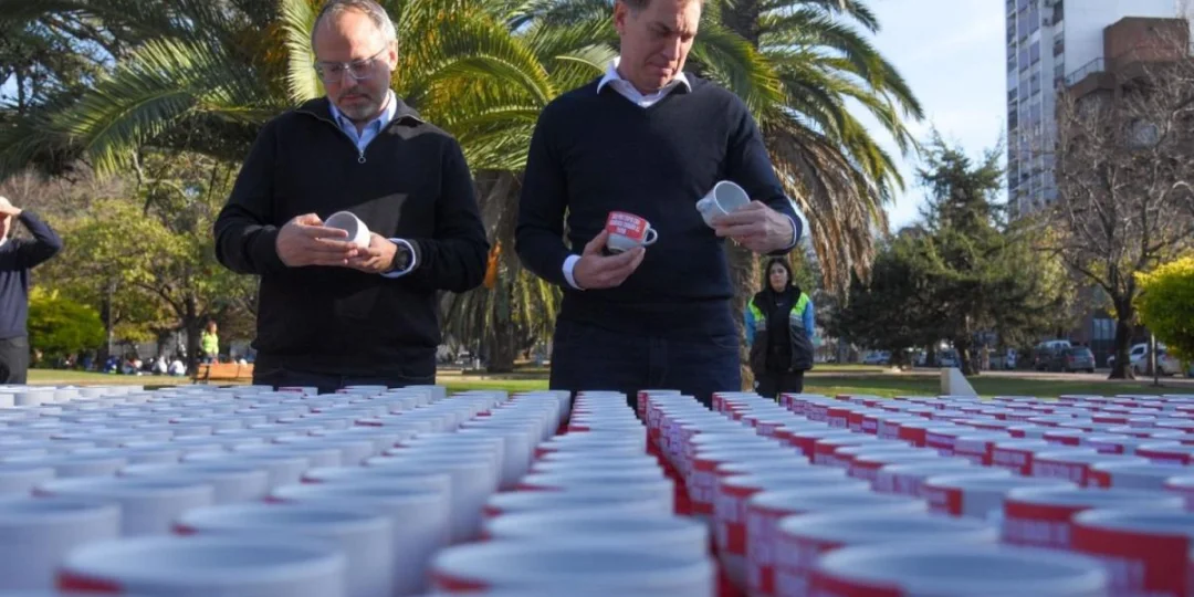 La promesa del diputado nacional del PRO contó con un llamativo juego de palabras, ya que montó una mesa con 500 tazas de cerámicas para ironizar con la gran cantidad de tasas que integran el sistema tributario provincial.