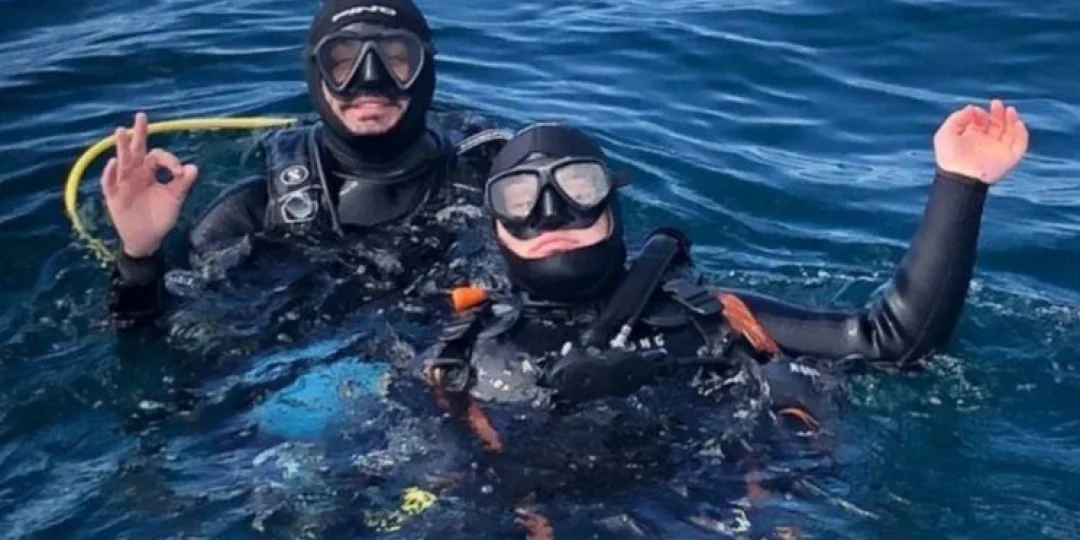 Después de prepararse con determinación, Nacho reunió las habilidades y la seguridad para su primer experiencia en agua marina. La sede de su iniciación en buceo de aguas abiertas fue Las Grutas, donde este lunes se sumergió por primera vez.