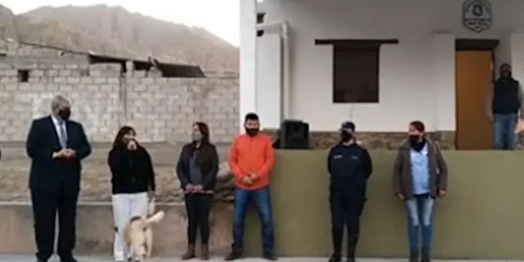 En el fragmento del vivo puede verse luego que incluso después de haberle hecho pis a la intendente de Maimará, el perro volvió a salir en cámara “buscando fama”, ¡un verdadero caradura!