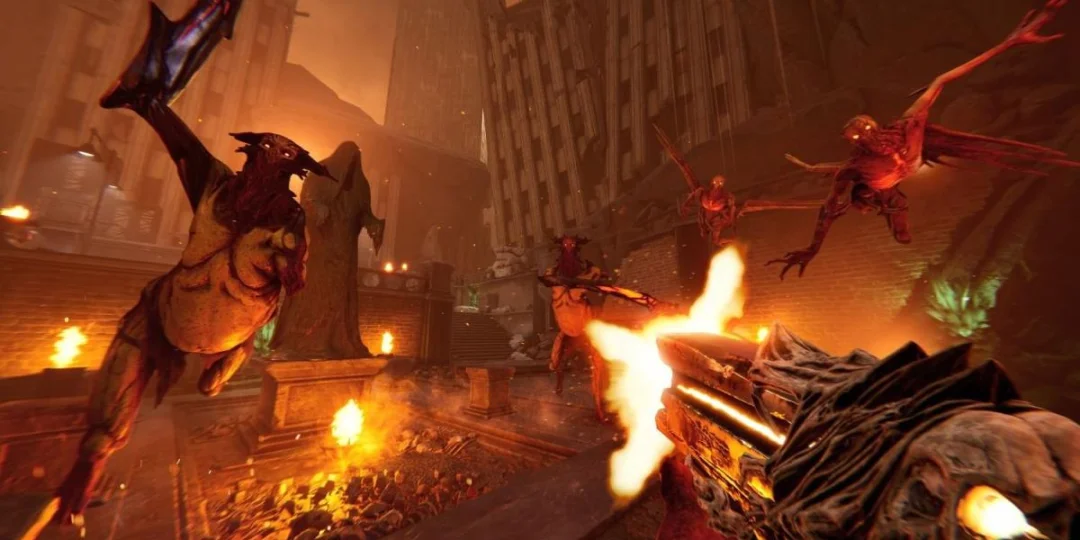 Juego rítmico de disparos FPS con música heavy metal. El objetivo es coordinar los tiros con el sonido para hacer explotar a los demonios de la mejor y más espectacular manera.