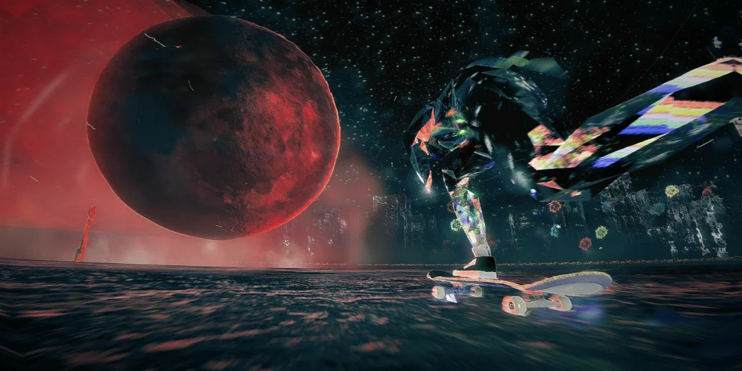 Skate Story destaca por su llamativo y singular estilo visual. En el juego, manejamos a un patinador "hecho de dolor y cristal" que debe avanzar por un Inframundo estilizado. La misión es épica: patinar hasta la luna y comérsela para obtener su libertad.
