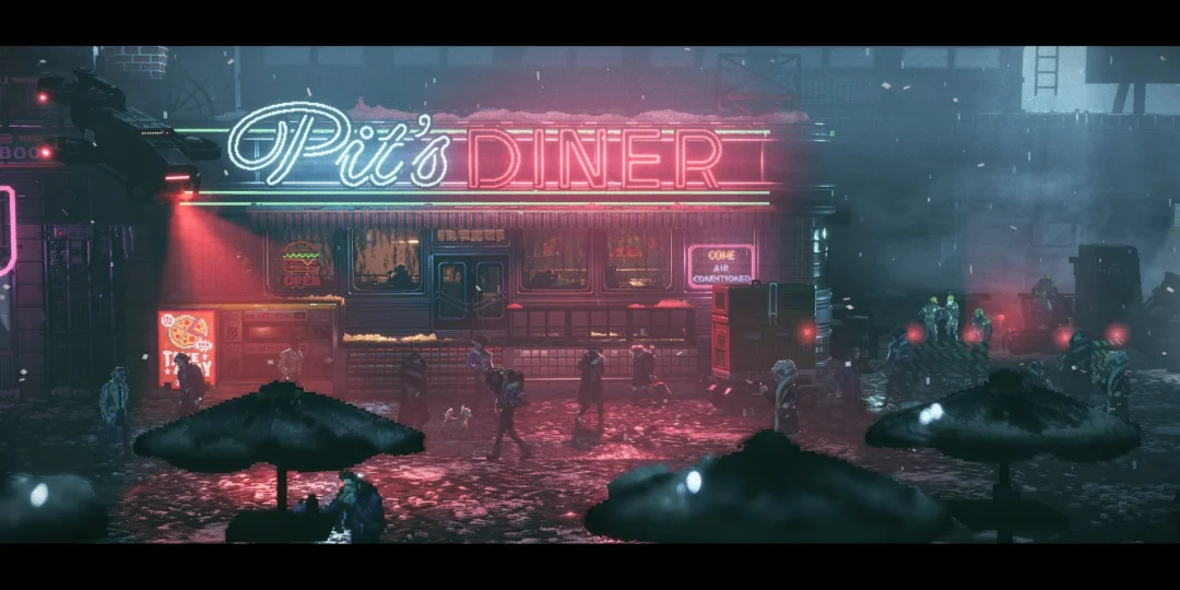 Replaced se presenta como una mezcla de plataformas cinemáticas y acción en pixel art, con una ambientación de ciencia-ficción oscura y estética retrofuturista.