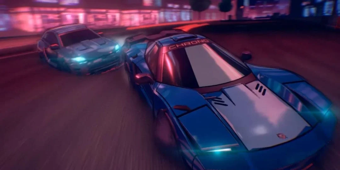 Título de carreras y derrapes ambientado en un entorno retrofuturista con mecánica de doble stick que permite un control absoluto del coche.