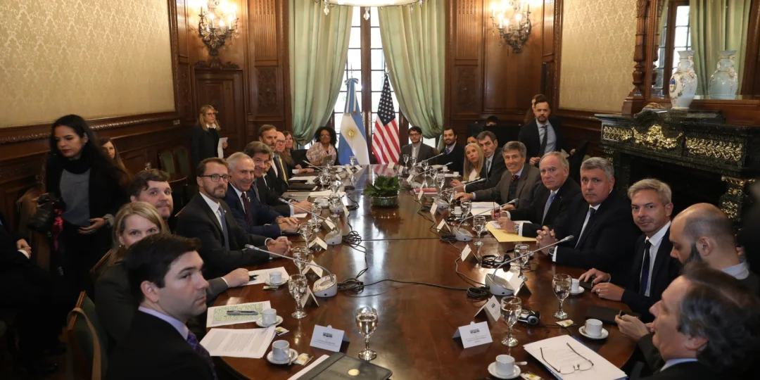La secretaria de Relaciones Económicas Internacionales del Palacio San Martín (cancillería), a cargo del embajador Marcelo Cima, junto al área del secretario de Minería de la Nación, Luis Lucero, y su par de Energía, Eduardo Rodríguez Chirillo, tuvieron una nutrida reunión con la Delegación de los Estados Unidos que visita nuestro país.