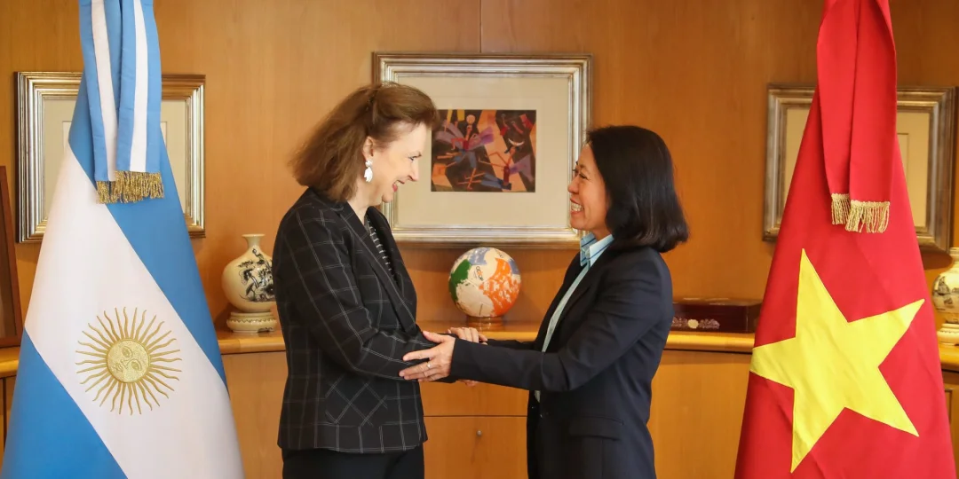 En ese contexto, la ministra y la embajadora vietnamita abordaron temas de interés común entre las partes, como el intercambio de visitas de alto nivel, cuestiones económico-comerciales y políticas, y repasaron la exitosa experiencia de cooperación técnica argentino-vietnamita. Además, enfatizaron la importancia de incrementar y diversificar el comercio bilateral y las inversiones.