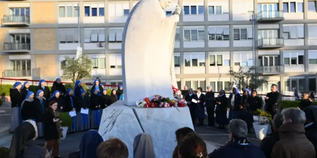 Como viene ocurriendo en los últimos días, decenas de personas se congregaron a las puertas del hospital romano para rezar por la pronta recuperación del también obispo de Roma.