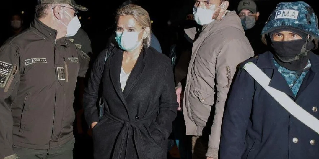 La mujer fue aprehendida en su domicilio en la localidad de Trinidad y trasladada a La Paz, ciudad donde un fiscal pidió su arresto junto al de varios de sus colaboradores políticos y militares.