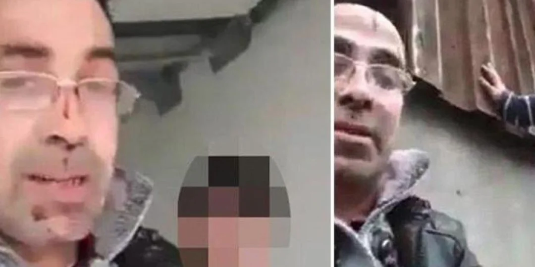 Mientras habla quedándose sin aliento frente a la cámara, se puede ver a un niño detrás de él, se trata de uno de sus hijos, con quien intentó huir de la escena.