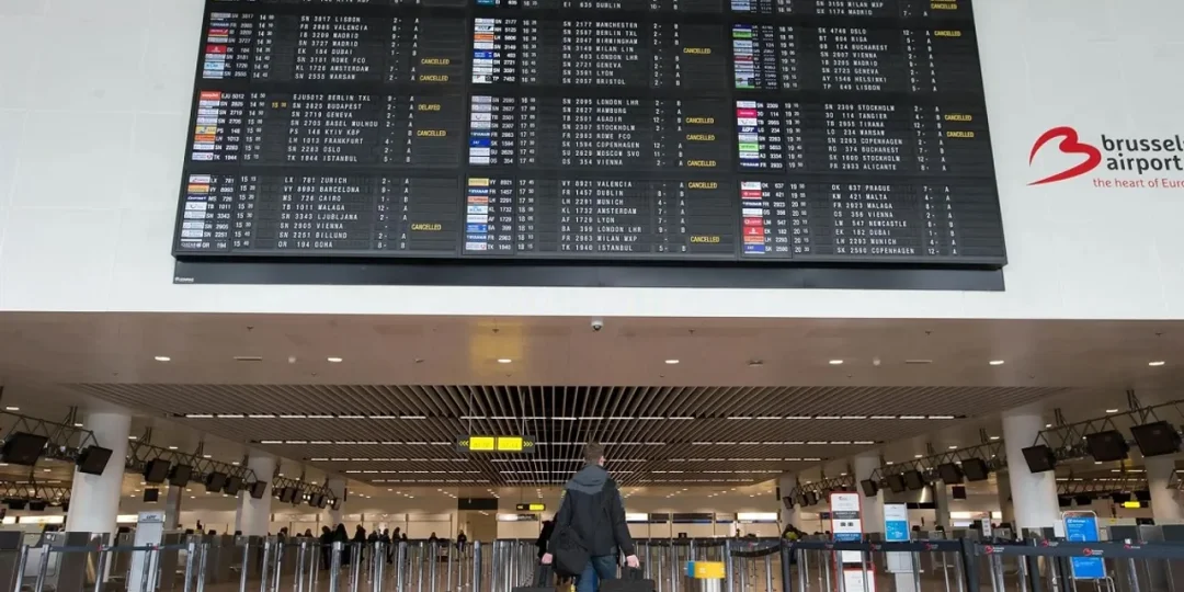 El aeropuerto de Bruselas fue uno de los más perjudicados. Las autoridades informaron a través de su sitio web que los trámites de registro y embarque tuvieron que realizarse de forma manual, lo que ocasionó largas filas y considerables demoras para los pasajeros. En un comunicado a la agencia AFP, confirmaron que "la situación aún no está resuelta" y recomendaron a los cerca de 35,000 pasajeros previstos para el día que solo se presentaran en la terminal si su vuelo estaba confirmado. Como resultado, al menos nueve vuelos fueron cancelados y muchos otros sufrieron retrasos de más de una hora.