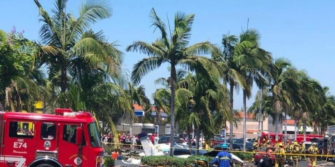 Cinco personas murieron después de que un avión pequeño se estrellara en un estacionamiento en el sur de California.