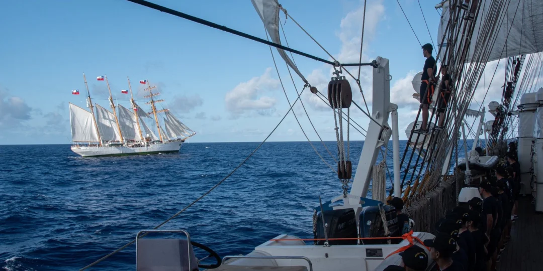 Por su parte, la "Dama Blanca" chilena, el Esmeralda, comenzó su 68ª travesía internacional el 13 de abril, partiendo de Valparaíso bajo el mando del Capitán de Navío Fernando Méndez Cañas. Un video obtenido muestra el punto de vista del Esmeralda, donde los marinos divisan a la Fragata Libertad. Este encuentro no solo es notable por la presencia de dos barcos escuela icónicos, sino también por el simbolismo de la diplomacia naval entre Argentina y Chile.