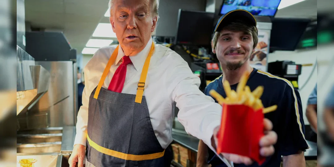 Trump protegió su camisa blanca y su corbata con un delantal. Luego de que le explicaran cómo se preparan las papas fritas, se puso manos a la obra: las frió, las saló abundantemente y las colocó en bolsitas. Conocido por su afición a las hamburguesas y la comida rápida, el magnate y político de 78 años, se dirigió entonces al mostrador. "Regalo de Trump", le dijo a una familia que esperaba ser atendida en un restaurante de Feasterville, cerca de Filadelfia.