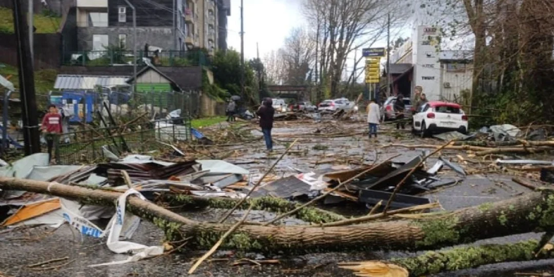 con vientos entre 139 y 178 kilómetros por hora causó serios daños en el centro de la ciudad de Puerto Varas, en el centro-sur de Chile.