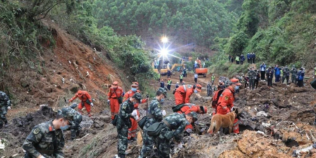 Tres días después del accidente, las autoridades dijeron que habían encontrado 183 piezas del avión, incluidas partes del motor y elementos de la cabina, 21 objetos pertenecientes a las víctimas y algunos restos humanos. La emisora estatal CCTV mostró imágenes de trabajadores en una pendiente desnuda tratando de desalojar una sección de ala blanca con el logotipo rojo y azul de China Eastern.