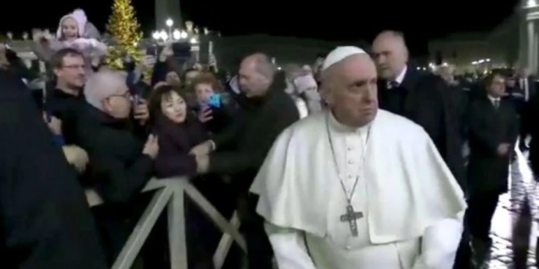 El papa Francisco se enojó con una mujer de rasgos asiáticos que lo sujetó de una mano en la Plaza San Pedro, mientras saludaba a los fieles tras oficiar la última misa del año en El Vaticano.