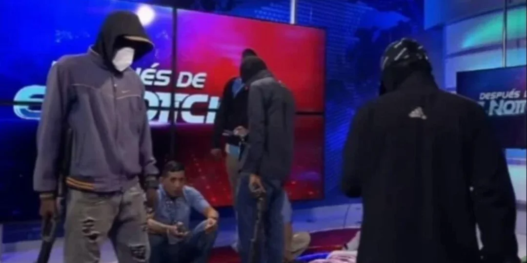 Una emisión en directo de la cadena de televisión ecuatoriana TC fue interrumpida el martes por personas encapuchadas y armadas, que obligaron al personal a tumbarse en el suelo, mientras se oían disparos y gritos.