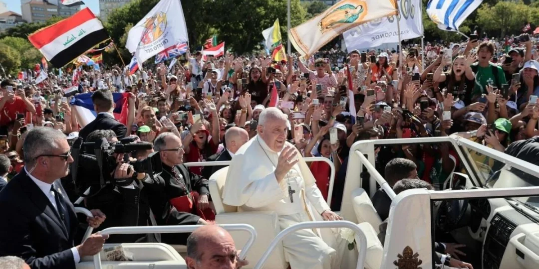 Una de las mayores multitudes jamás vistas en Portugal rodeó este jueves al Papa Francisco cuando se dirigía en un vehículo abierto a un encuentro, en el que dijo a un océano de jóvenes católicos de todo el mundo que tengan “cuidado” con la falsa felicidad que acecha en las redes sociales.
