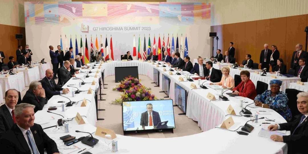 Asimismo, coincidieron en "la importancia de las medidas comerciales, incluidos los aranceles" y las prohibiciones de importación o exportación. Las naciones desarrolladas también están "considerando seriamente la posibilidad de medidas comerciales y otras restricciones a los países y entidades que contribuyen a la financiación de los esfuerzos bélicos de Rusia, incluyendo los productos refinados procedentes del petróleo ruso".