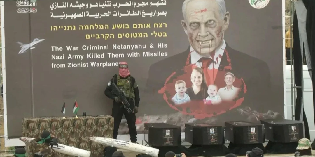 Las imágenes de la ceremonia de entrega mostraron a ciudadanos israelíes alineados en las carreteras, ondeando banderas israelíes mientras las ambulancias militares transportaban los ataúdes de los rehenes asesinados.
