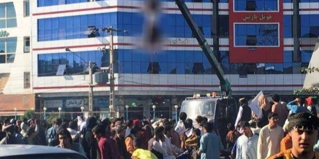 En el mismo nivel de violencia, otro video mostraba a un hombre suspendido de una grúa en una rotonda importante de Herat con un cartel en el pecho que decía: "Los secuestradores serán castigados de esta manera".