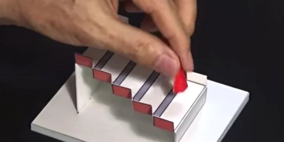 Esta experiencia logró el primer puesto y su autor es Kokichi Sugihara de Japón. Doctor de la Universidad de Meini, una de las mejores instituciones educativas del país oriental. Se trata de una imagen en 2D que tiene dos interpretaciones. Una escalera vista desde arriba y la vista desde abajo. Y la segunda interpretación se puede percibir fácilmente si damos la vuelta a la imagen. El objeto en 3D también encierra dos interpretaciones. Ambas escaleras son vistas desde arriba y las interpretaciones cambian de una a otra cuando giramos el objeto 180 grados alrededor del eje vertical.