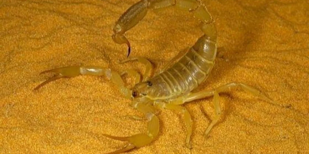 Una de las especies más peligrosas y conocidas en esa zona de Egipto, es la conocida popularmente como 'de cola gorda', Este tipo de escorpión que mide cuatro pulgadas (10 cm) de largo, tiene seis pares de ojos y una cola llena de veneno tóxico.  La persona que es picada por este espécimen puede morir en tan solo una hora, si no recibe atención médica.