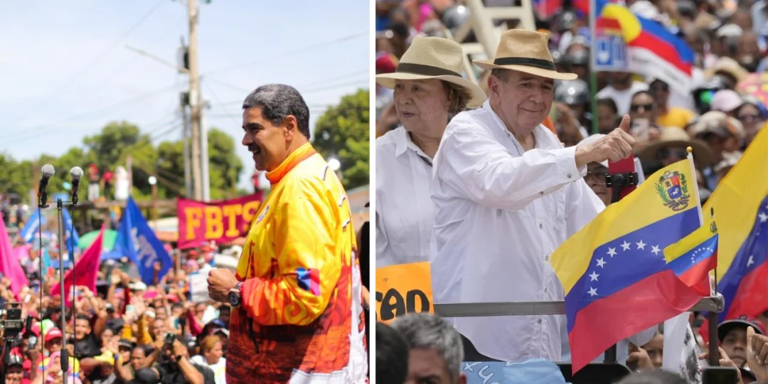 El presidente venezolano, Nicolás Maduro, y su principal adversario en los comicios presidenciales del domingo 28 de julio, Edmundo González Urrutia, cerraron, este jueves 25 de julio, sus campañas proselitistas en medio de continuas frases inquietantes del mandatario chavista, quien había hablado de un "baño de sangre", "guarimba" o una "guerra fraticida" si pierde; mientras se intensifican los pronunciamientos internacionales pidiendo un proceso transparente.