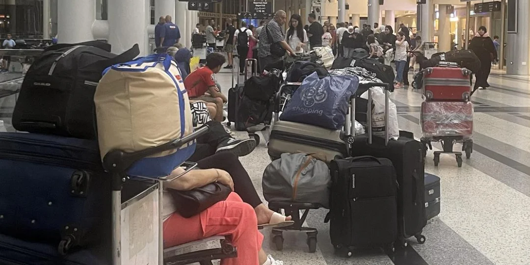 Valiéndose de "cualquier billete disponible", fueron las palabras de la embajada estadounidense en Beirut, una de las tantas recomendaciones, casi con sonido de alarma, que emitieron varias embajadas a sus nacionales provocando el aumento del tráfico aéreo y las aglomeraciones de personas buscando partir desde el aeropuerto internacional Rafic Hariri. El mismo, es el único aeropuerto comercial operativo del país, situado en los suburbios del sur de la capital del país.