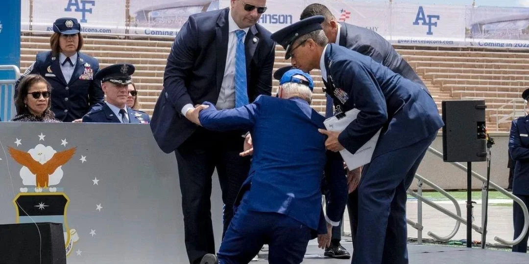 El accidente del presidente, se produjo al final de un discurso en el que se expresó sobre el compromiso de Estados Unidos con Ucrania en su guerra contra la invasión de Rusia, y reconoció a los graduados de la Academia de la Fuerza Aérea que pilotean el Air Force One (avión presidencial), y a los que son parte de todos los escuadrones en cada base en suelo americano y en el extranjero.
